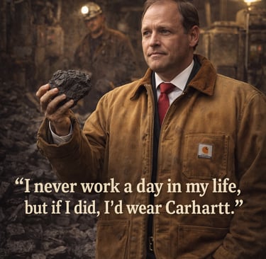In the end, this isn’t about fashion. It’s about symbolism. Carhartt protects against wind, rain, and job-site hazards. In politics, it protects against being mistaken for what you actually are: a full-time officeholder trying very hard to look like you just clocked out of a double shift.