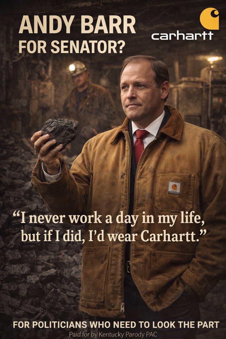 In what may be the most honest brand alignment in modern politics, Carhartt has reportedly decided that whether Andy Barr wins or loses, he’s still their guy. Why? Because no one understands the delicate art of looking rugged while never actually doing rugged things quite like a career politician in a barn coat.