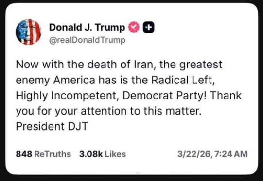 After labeling Democrats as Americaās āgreatest enemyā in the wake of Iran tensions, Trump didnāt just cross a lineāhe took a running leap over it. This isnāt policy disagreementā¦this is language that historically fuels extremism, dehumanization, and violence. When political opponents are framed as enemies of the nation, youāre not debating anymoreāyouāre assigning targets.